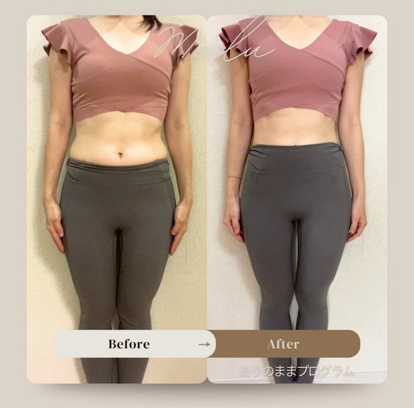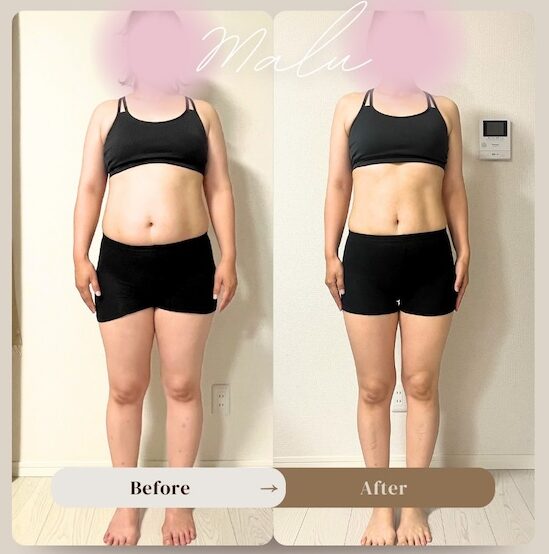 気づけばお腹周りは −9.5cm。ズボンもゆるゆるになって、体重は20代の頃に戻っていました! そして何より一番は、「私でもできるんだ」って思えたことが本当にうれしかったです。