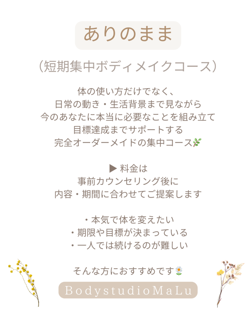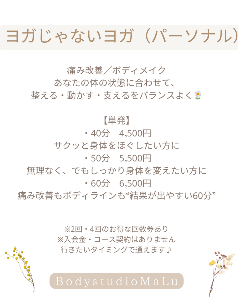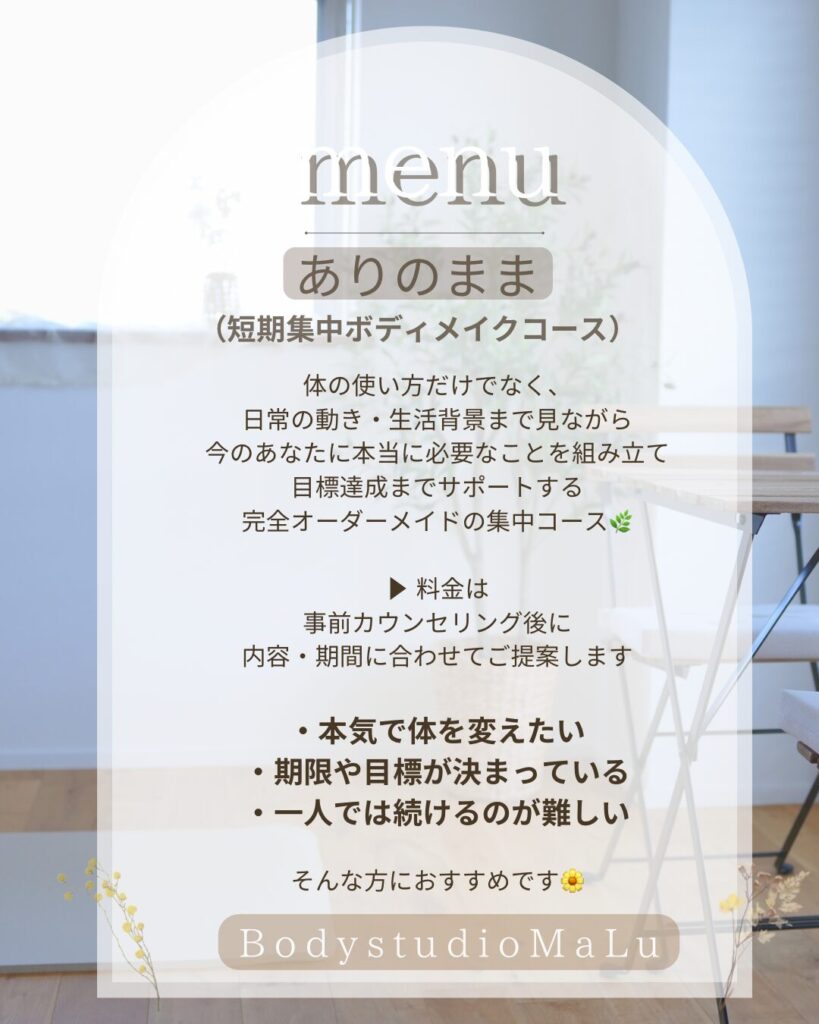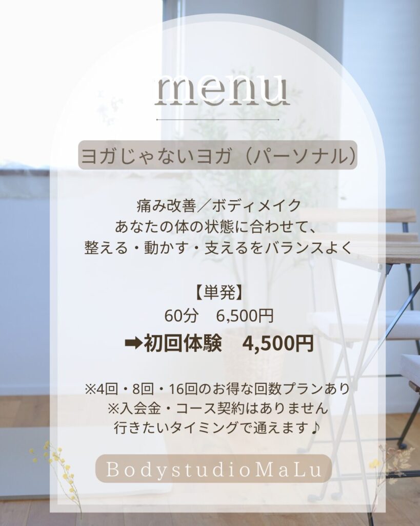 | 動きやメニューが決まっている | その時の身体に合わせて内容を調整 |